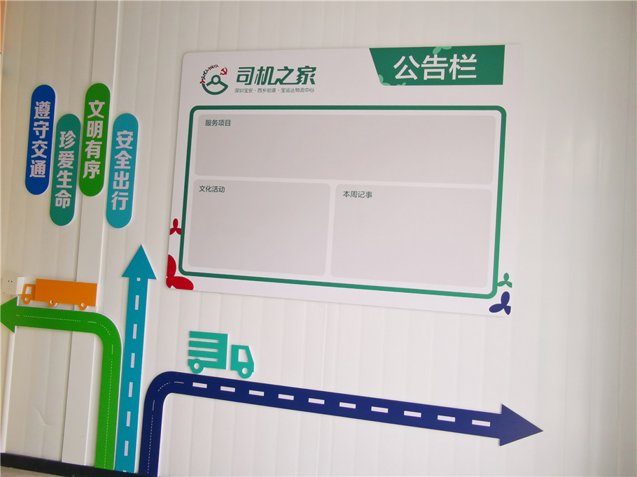 深圳寶安寶運(yùn)達(dá)物流園為進(jìn)一步實(shí)施“黨建引領(lǐng) 促健康物流”戰(zhàn)略思想,在深圳市寶安區(qū)寶運(yùn)達(dá)物流園興建“司機(jī)之家”物流文化展廳、展示墻建設(shè)項(xiàng)目,將“黨建引領(lǐng)、產(chǎn)業(yè)興旺、平安出行、治理有效、宣傳教育”等理念進(jìn)行設(shè)計(jì)裝修,旨在營(yíng)造處處是課堂,時(shí)時(shí)受教育的宣傳氛圍,將監(jiān)督公示欄,公開服務(wù)承諾、服務(wù)內(nèi)容、經(jīng)營(yíng)性服務(wù)項(xiàng)目、黨建課堂、政策方針及時(shí)傳達(dá)給司機(jī)群體。讓司機(jī)群體在工作、休息中也耳濡目染、陶冶情操,增強(qiáng)行為修養(yǎng),發(fā)揮黨建引領(lǐng)作用,倡導(dǎo)積極向上的文明生活,引導(dǎo)廣大群眾堅(jiān)定跟黨走的決心。
