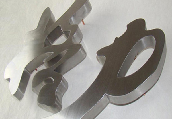 不銹鋼字,人們利用其"不銹"的特點,采用拋光(發(fā)紋)面即啞光處理,或直接采用8K(鏡面)處理,讓其炫目多彩,這種類型屬建筑流派中的光亮派的一種,但兩種處理有個共同缺點,缺乏個性,因為多年來人們多選用這種工藝,固其個性不彰顯;在戶外燦爛的陽光下,可能因金屬的折射原因,令文字筆畫不清晰,而在陰雨天,金屬因失去光澤或蒙灰的緣故同樣顯得模糊?;谶@些因素,根據(jù)工藝的不同,發(fā)展出更多顏色的電鍍不銹鋼產(chǎn)品,顏色豐富、種類多樣!受到銀行、機關(guān)單位、房地產(chǎn)行業(yè)、金融行業(yè)用語做LOGO背景墻|形象墻|文化墻