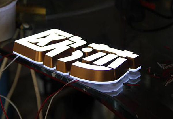 背光字俗稱背打光字,就是光源安裝在不銹鋼字背面字殼內(nèi),光打在墻面上的一種發(fā)光字,背打光字工藝精致,高檔雅制,根據(jù)不同的做法可以安裝在寶安室外廣告招牌門頭或者室內(nèi)形象墻上等。制作施工工藝:背光字面殼采用不銹鋼折彎打磨精工制作,內(nèi)置LED光源(光源顏色可選)字底用亞克力激光雕刻成字形或用專用支架均勻支撐懸空。