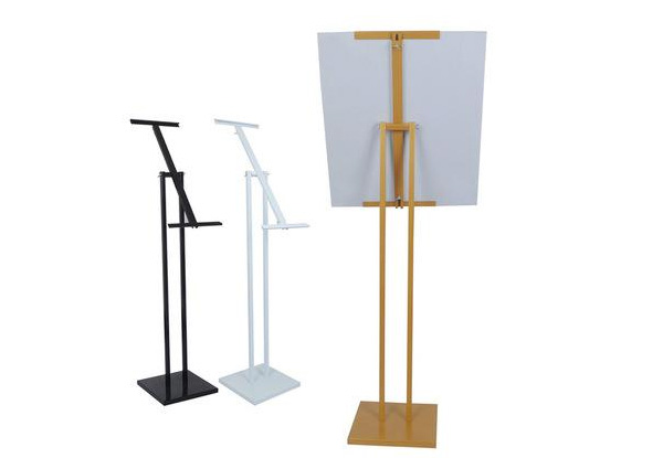 單面/雙面掛畫架,又稱為POP掛畫架,輕巧便攜、造型簡練、安裝方便、外觀大方,有單面或雙面安置畫面可選,能起到很好的展示宣傳效果。底座體積較小,不占用空間,畫面寬度任意,一般適配50*70厘米或60*120厘米KT板,尺寸都可以自由調(diào)節(jié),畫架最高可調(diào)至2米,適用于企業(yè)產(chǎn)品宣傳、酒店,銀行,超市等營銷活動。